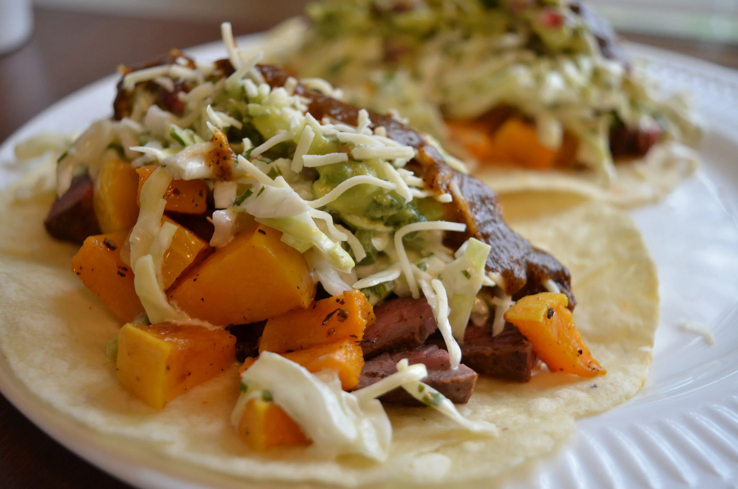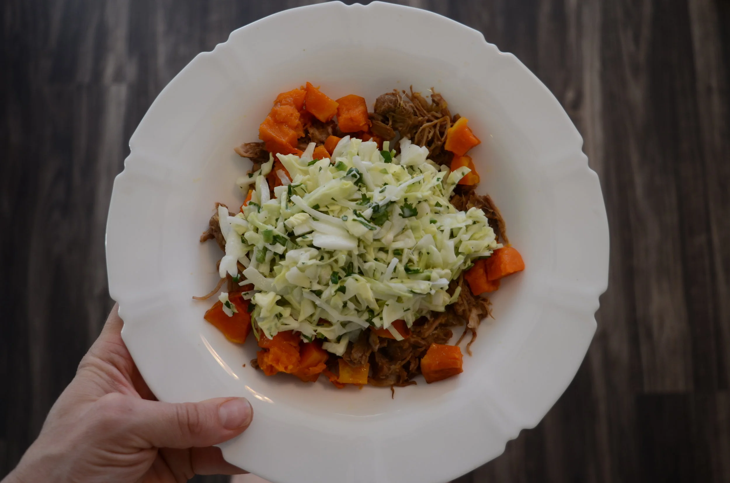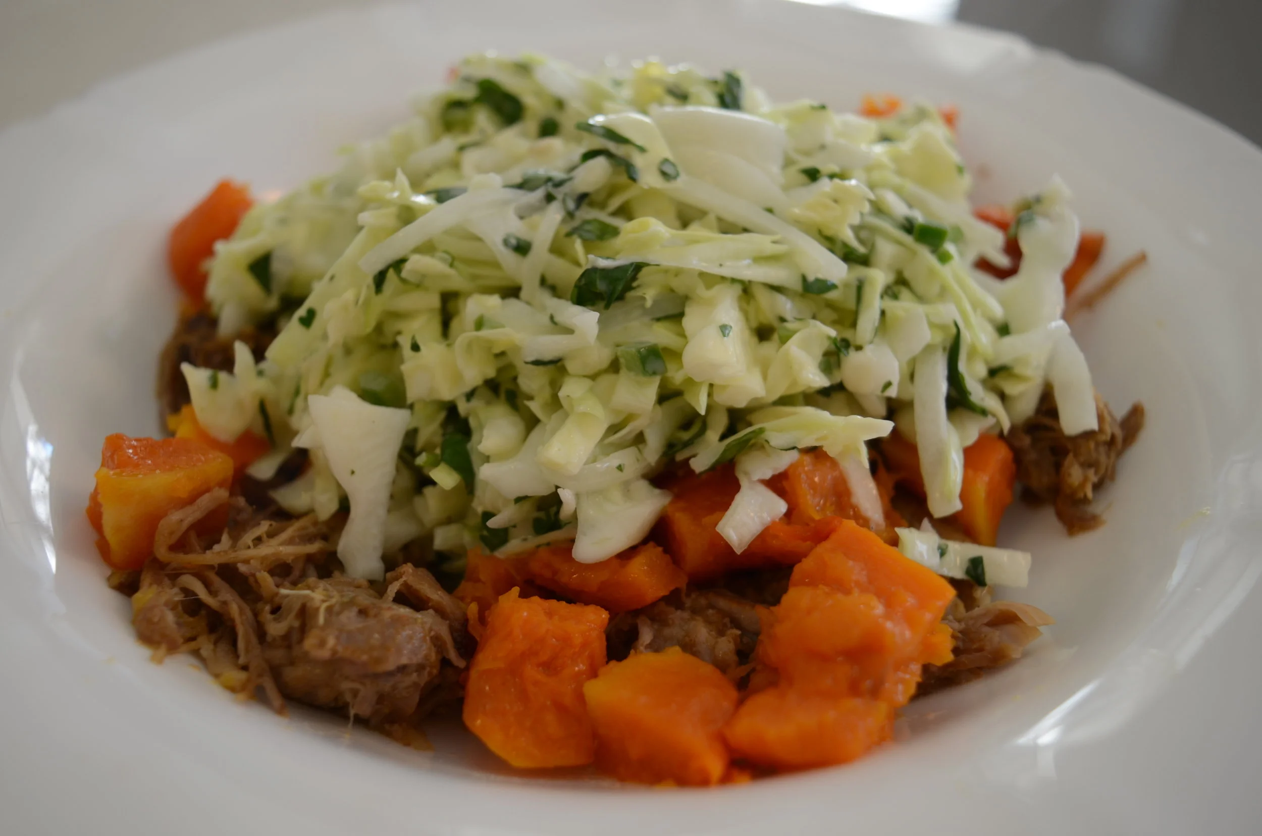 Carnitas with roasted butternut squash and cilantro slaw